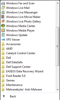 The Start Menu in Windows 7 is setup a bit differently. Instead of expanding the width of your screen, it’s a lengthy vertical list of program shortcuts. Opening a program’s shortcut folder extends the list in this way even more. I personally find it slower to access program shortcuts because now my eyes only see a few shortcuts at a time rather than all of them at once. What more, all the unorganized shortcuts are listed atop the folders. It’s really the reverse of what we’re used to. In Windows Explorer, it’s organized folders on top of disorganized documents.