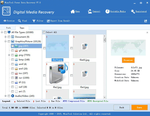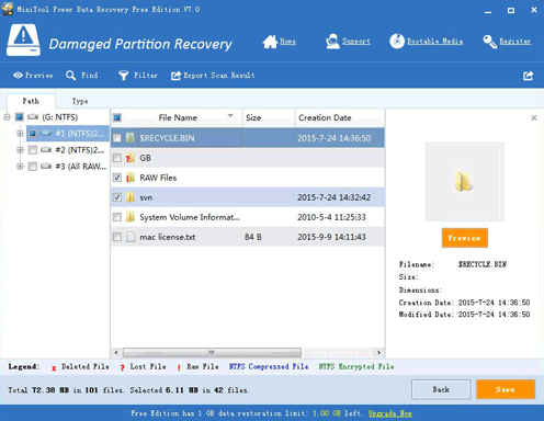 Usually you would think accidentally deleted or virus-deleted files are lost forever. But actually most of them can be recovered, as well as deleted data and data saved in damaged or lost partition.Some third-party data recovery software is able to do this. In the following content, I’d like to introduce a free data recovery program called Minitool Power Data Recovery 7 Free Edition.